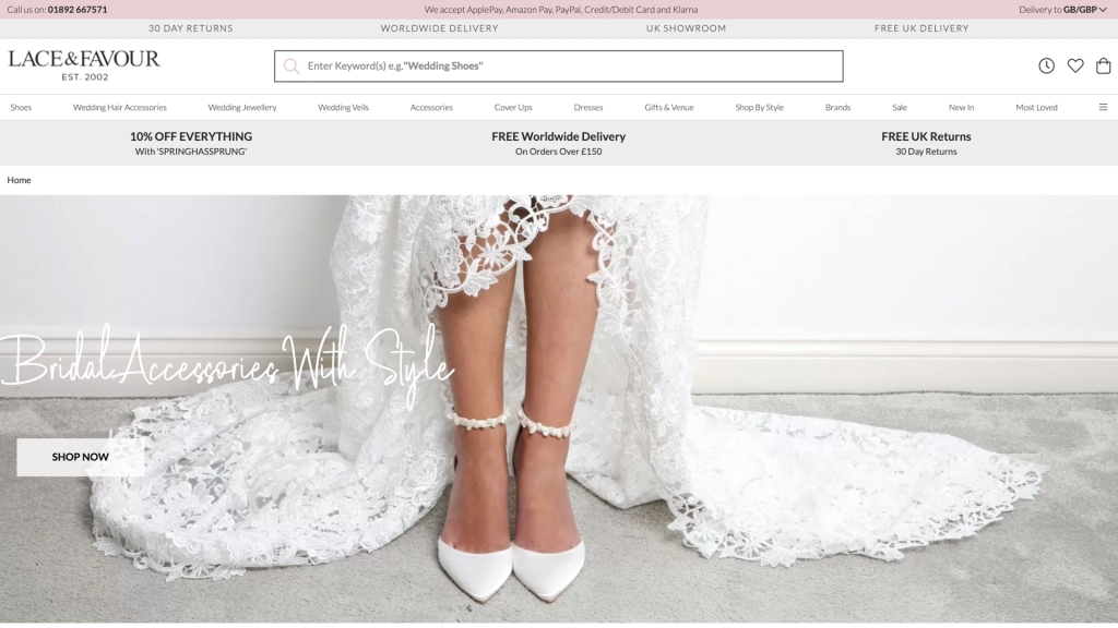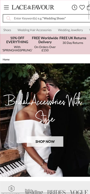 Our SEO campaign successfully overcame a number of challenges, placing Lace & Favour on the first page of results for a number of high volume, key search terms – including wedding shoes and wedding veils.
